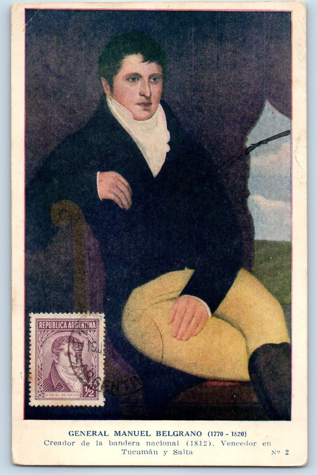 Tucuman Argentina Postcard General Manuel Belgrano Creator Flag c1930's