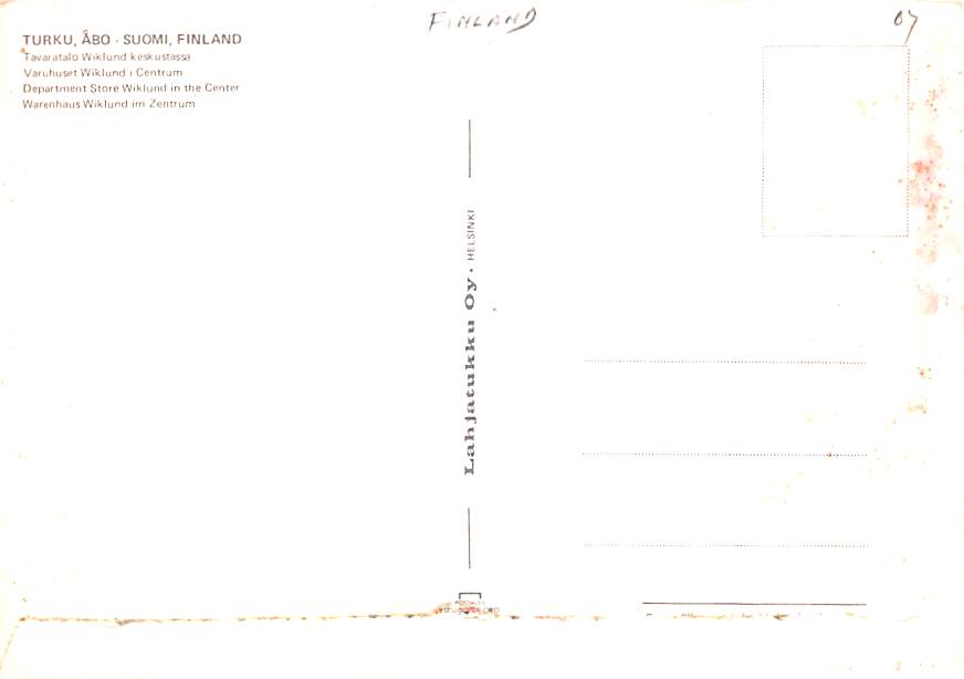 Turku - Abo, Suomi, Finland Grade: 3 Category: Continental Size Postcard, Approx 4 in x 6 in (10 cm x 15.25 cm) Product Size: Continental size: 4X6 inches (10.5 cm x 15 cm) Grading Scale: Grade 1 = Perfect cor ... Read More