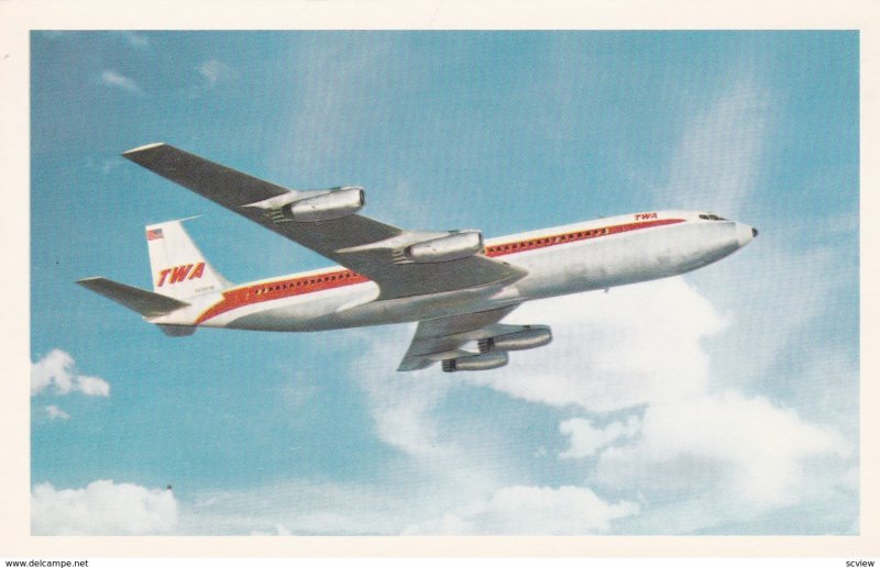 TWA Superjet airplane , Right face , 60-70s :: Post Card, 3.5 by 5.5 , Chrome , EX