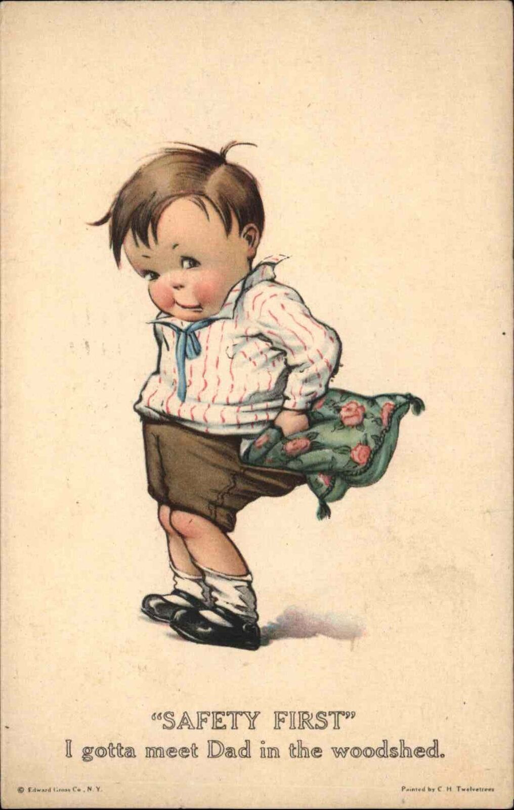 Twelvetrees Boy Stuffs Pillow Down Pants Spanking Comic Vintage Postcard