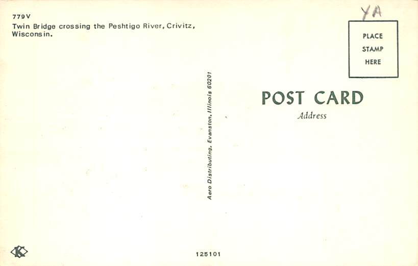 Twin Bridge - Crivitz , Wisconsin WI Postcard - View Images