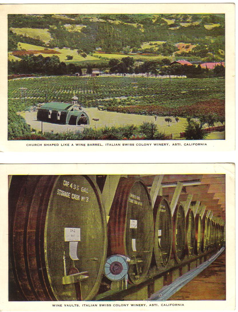 Two (2) Different California Winery Post Cards, Asti Cal.