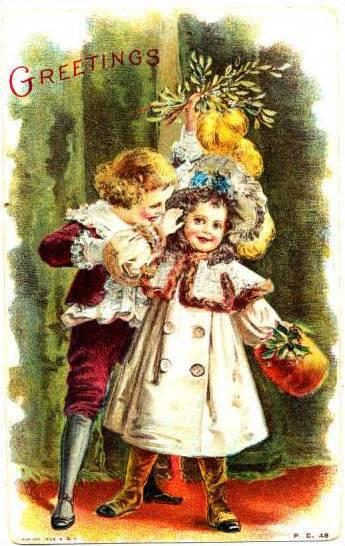 Two Children Greetings Printed On Silk Postcard