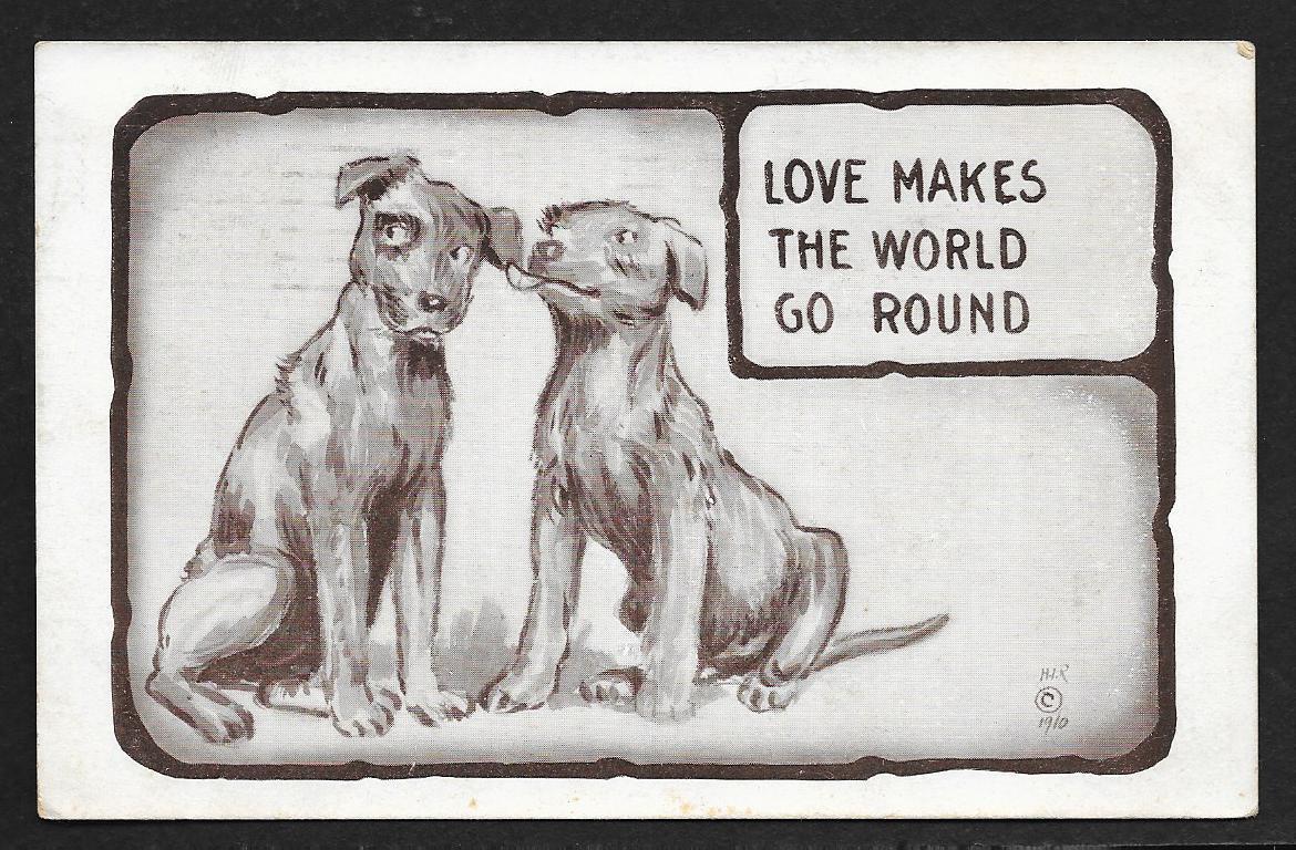 Two Dogs Sitting 'Love Makes the World go Round' Used c1911