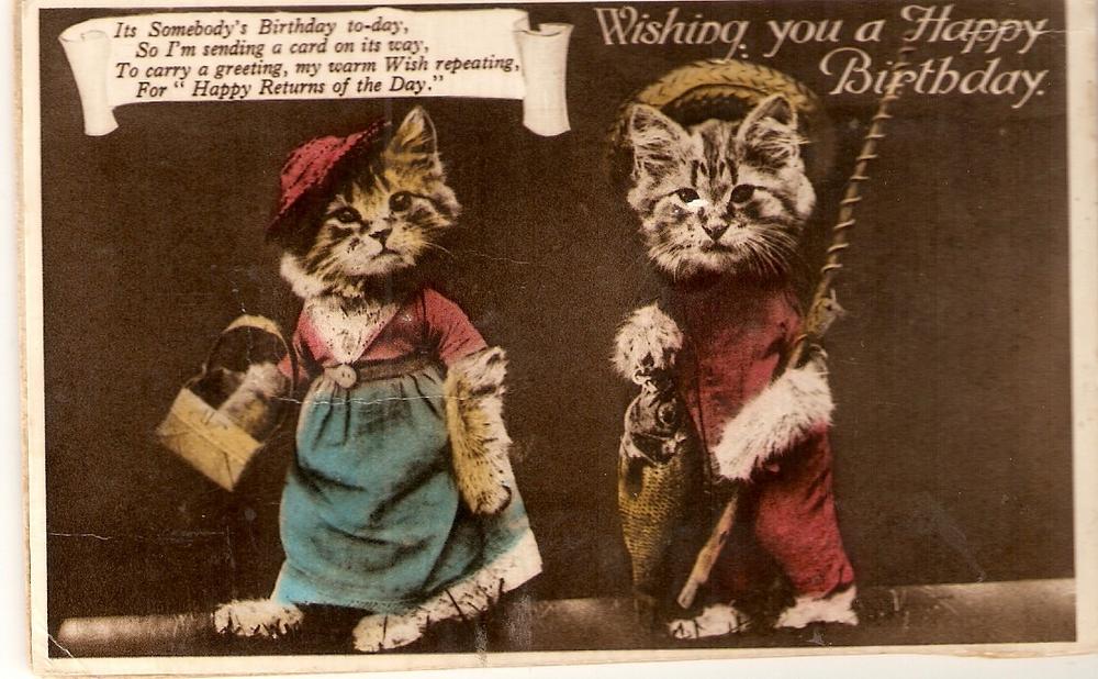 \"Two Dressed Cats\" Nice English Birthday Greeting PC