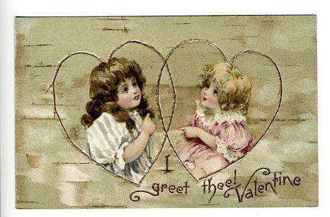 Two girls valentine's day beautiful . postally unused. please see scan(s) for condition. postcard measures 3.5 x 5.5" original post card.