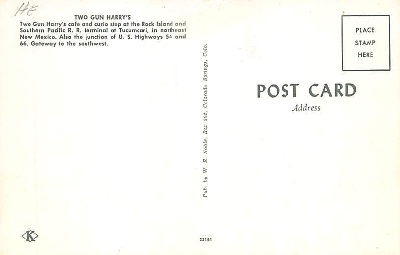 Two Gun Harry's Tucumcari, New Mexico NM Postcard - Unused Grade: 1 Size: R - Regular Size Postcard - approximately 3 1/2 inch x 5 1/2 inch (9 CM x 14 CM) Grading Scale: Grade 1 = Perfect corners Grade 2 = Very ... Read More