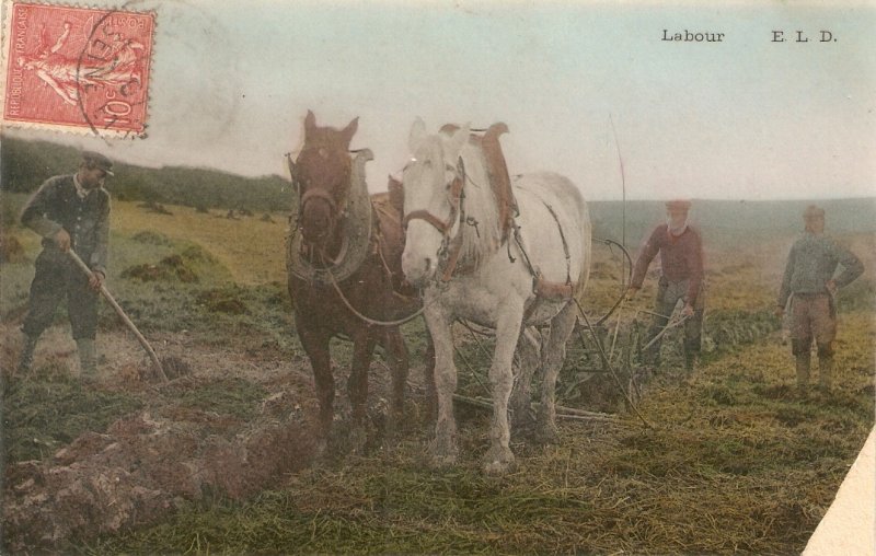"Two Labour Horses" Old vintage Fremnch postcard