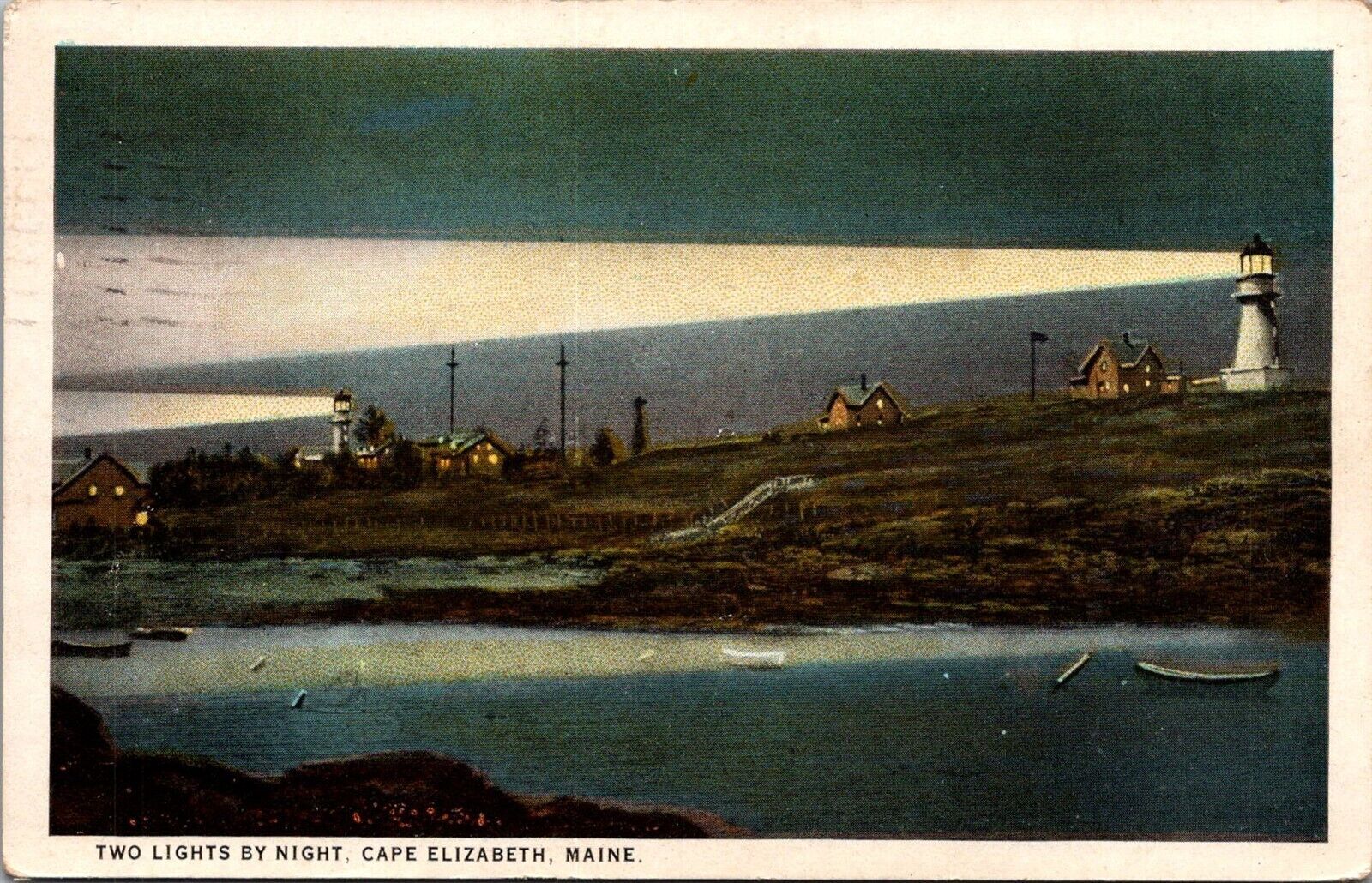 Two Lights By Night, Cape Elizabeth ME c1925 Vintage Postcard T60