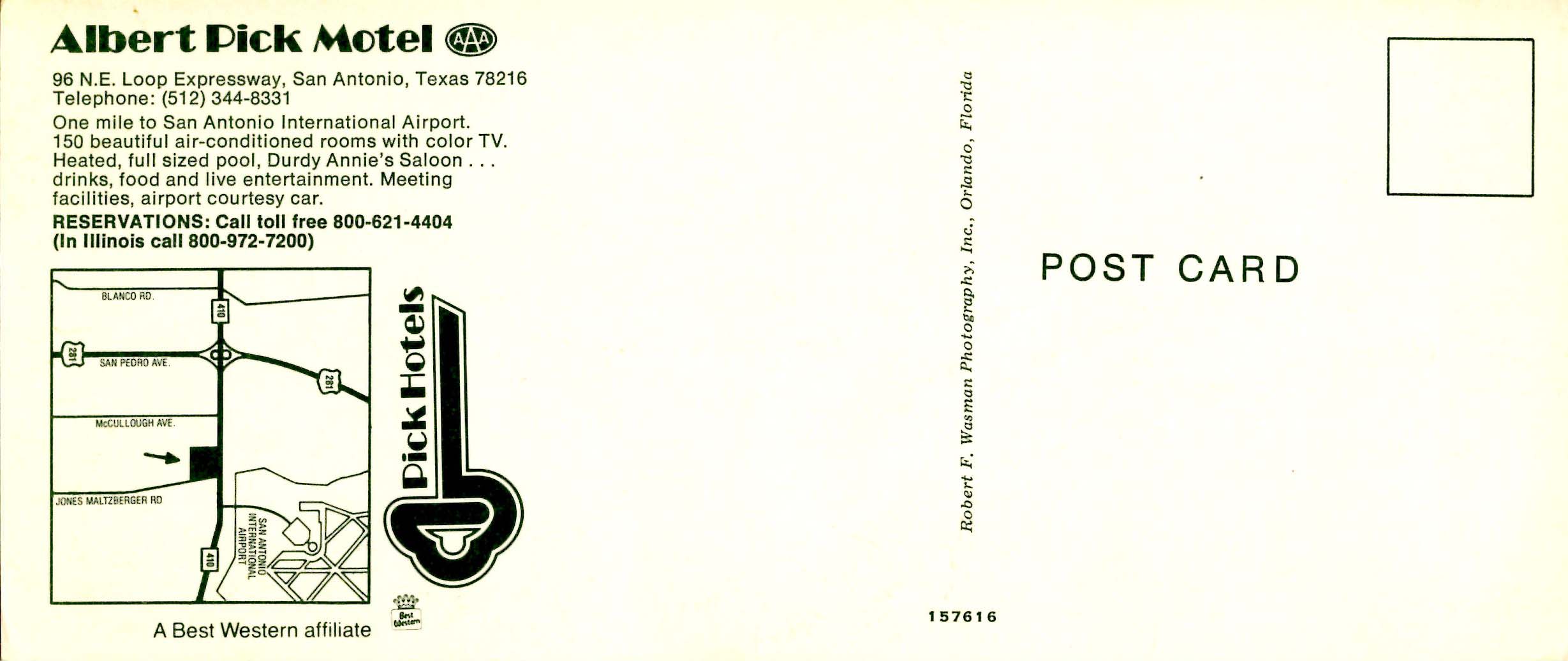 TX - San Antonio. Albert Pick Motel (3.5" X 8.25").
