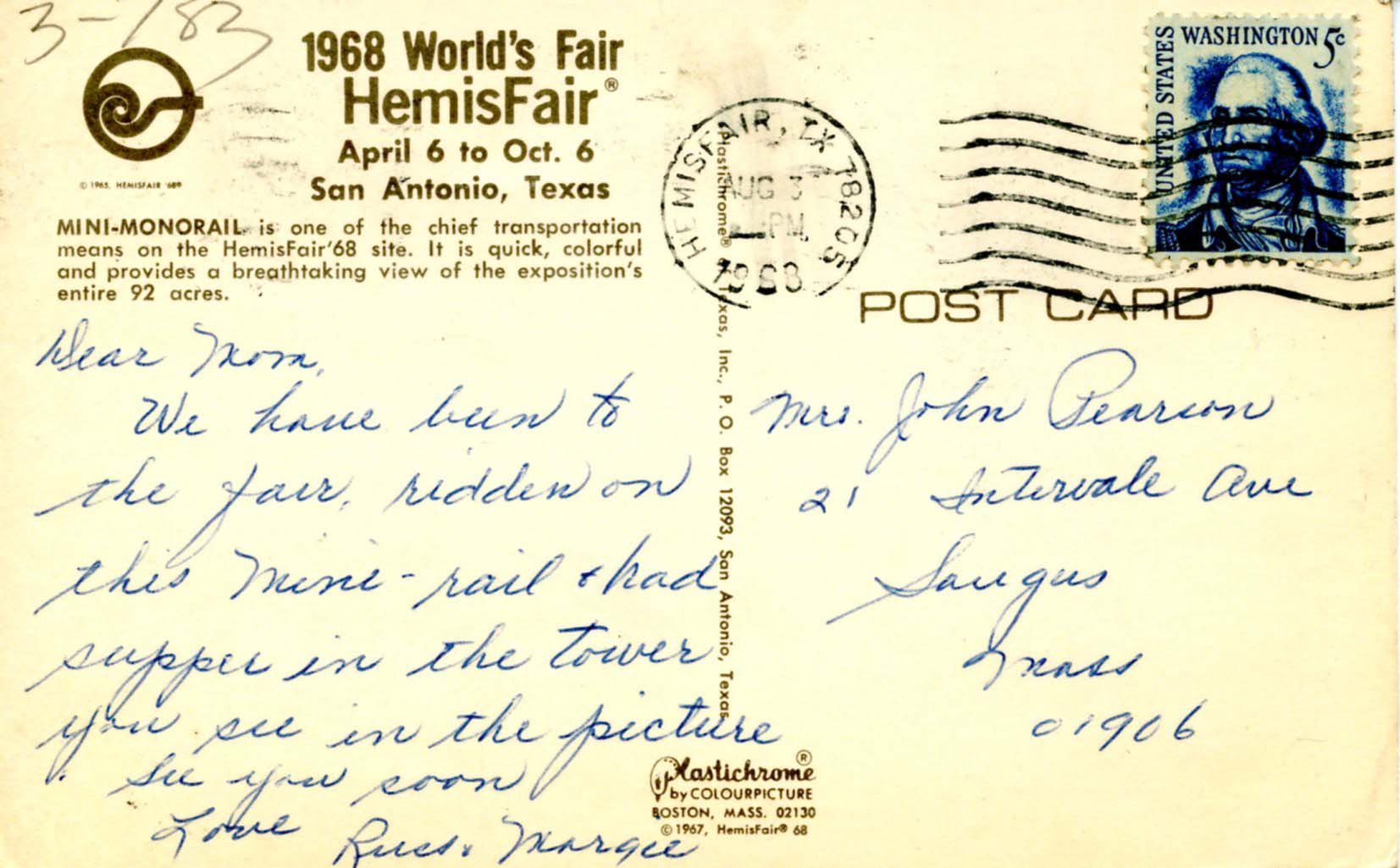 TX - San Antonio. HemisFair '68. Mini-Monorail