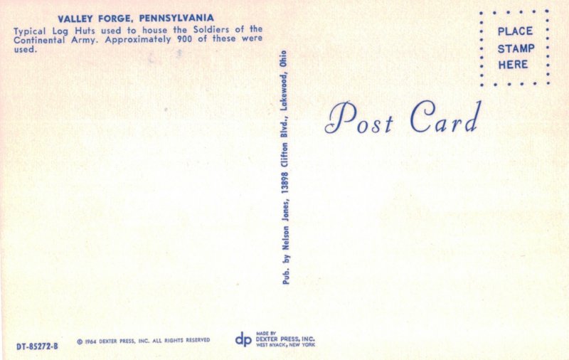 Typical Log Huts used by Continental Soldiers Valley Forge, PA Postcard