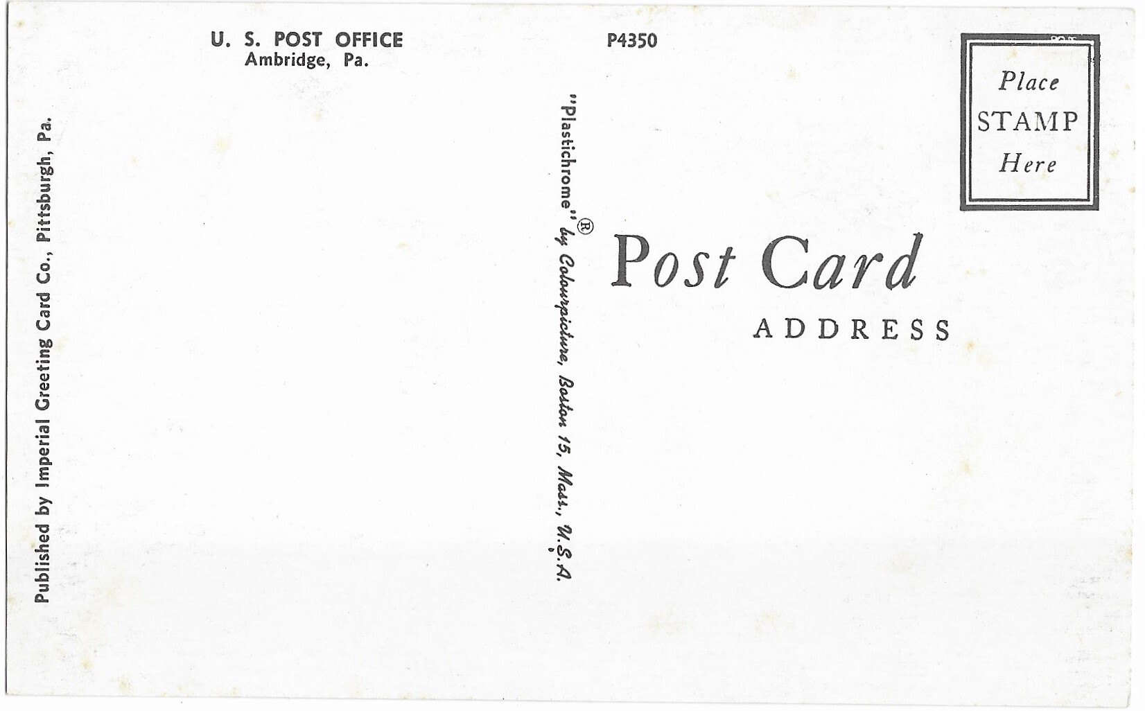 U S Post Office in Ambridge Pennsylvania 1950sSeller Information