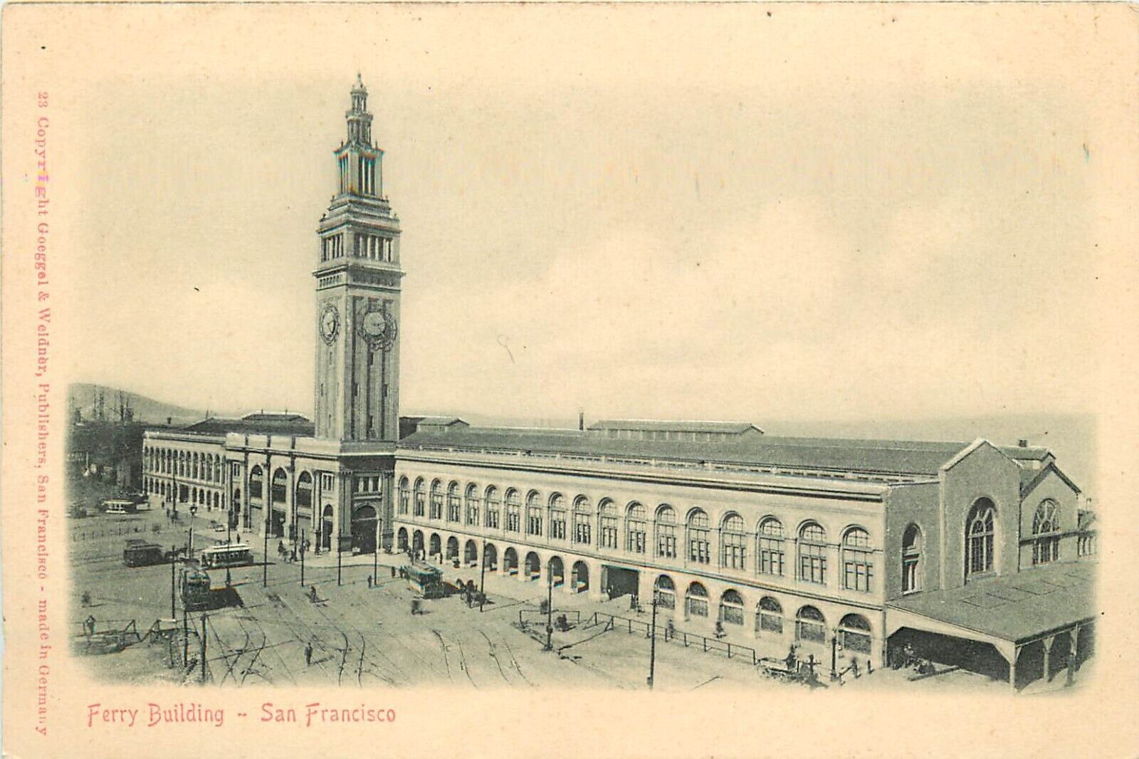 UDB Embossed Postcard; Ferry Building, San Francisco CA, Goeggel & Weidner c1903