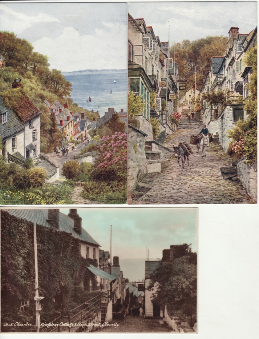 UK DEVON CLOVELLY 3 POSTCARDS postcard