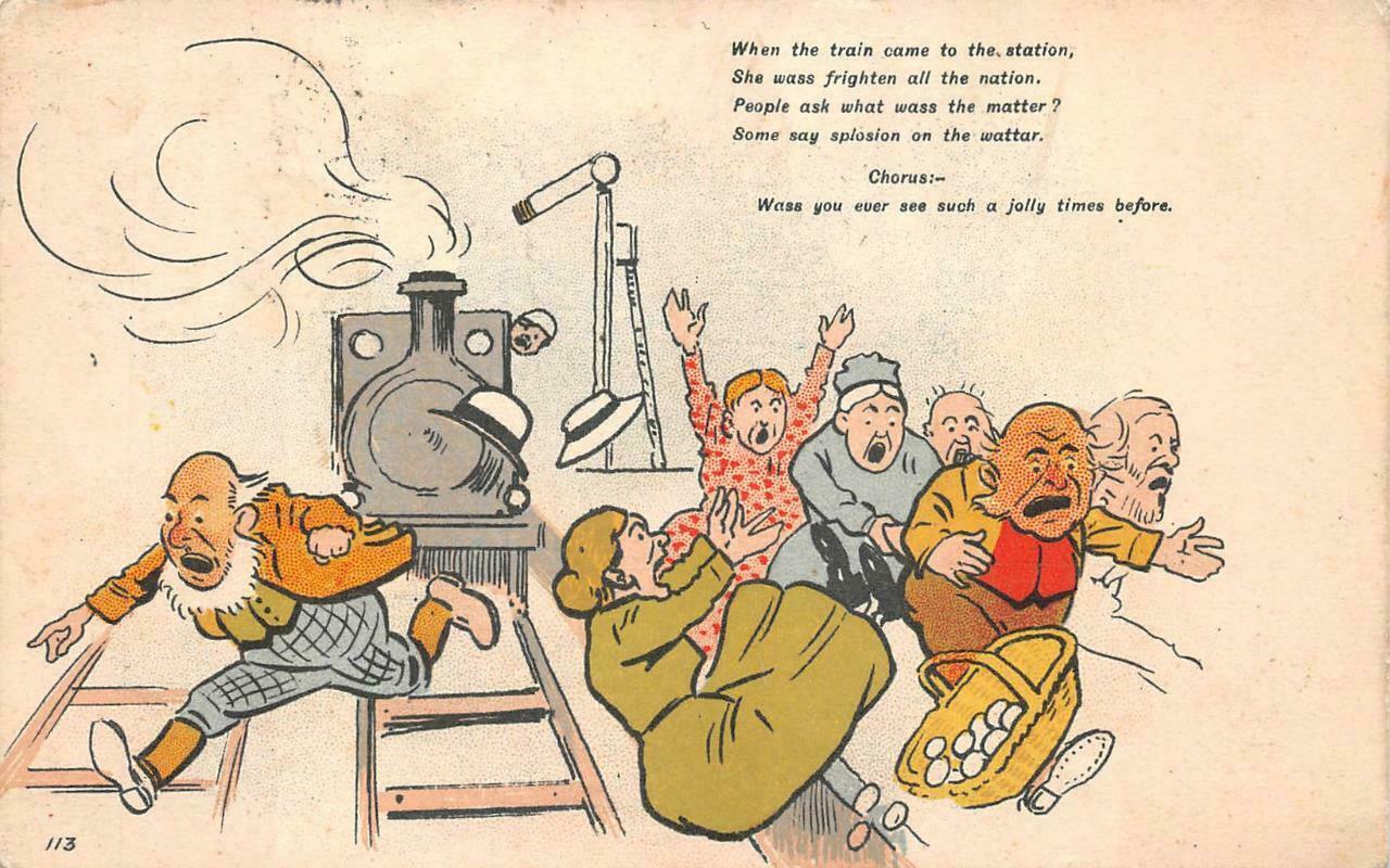 UK ENGLAND TRAIN BLACK DIALECT POEM TRAIN COMIC POSTCARD 1904