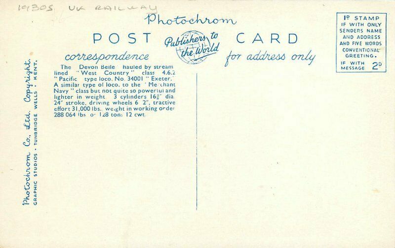 UK Railway 1930s Postcard Devon Belle artist impression Graphic Studios 21-4813