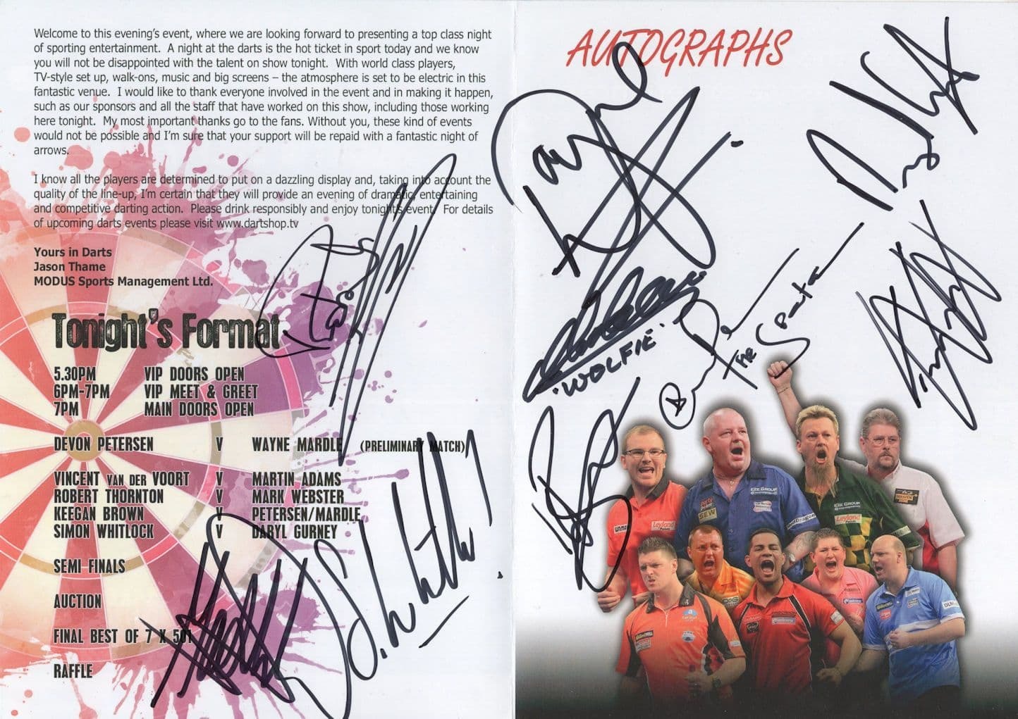 Ultimate Simon Whitlock Martin Adams Mark Webster 9X Darts Hand Signed Programme