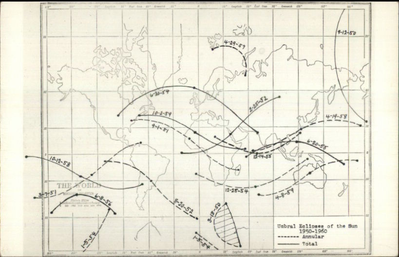 Umbral Eclipses 1950-60 Scientific Map - Astronomy Real Photo Postcard