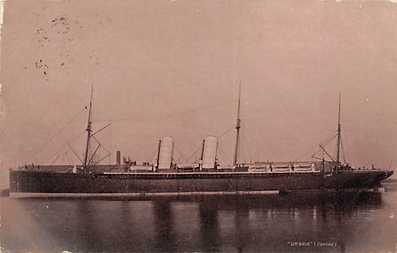 Umbria Cunard Line Ship Postcard 1905, Grade: 3 - marks on corners Size: Regular Size Postcard - approximately 3 1/2 inch x 5 1/2 inch (9 CM x 14 CM) Grading Scale: Grade 1 = Perfect corners Grade 2 = Very Mini ... Read More
