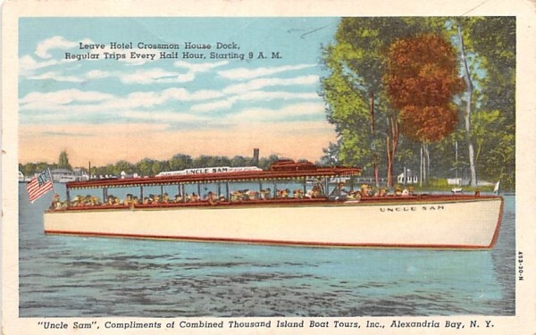 Uncle Sam Alexandria Bay, New York Postcard - Unused Grade: 2 Size: R - Regular size: Approx 3 1/2 X 5 1/2 inch (9 cm X 14 cm) Grading Scale: Grade 1 = Perfect corners Grade 2 = Very Minimal corner wear, no cr ... Read More