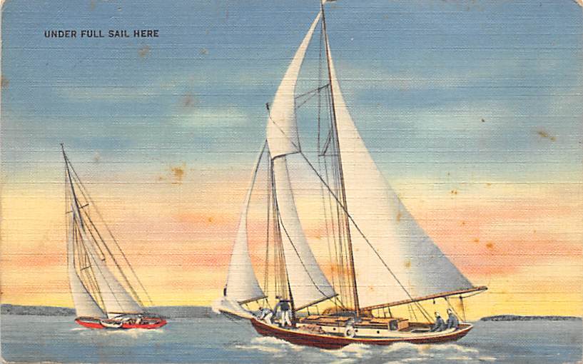 Under full sail here Postcard Under full sail here, Grade: 4 Size: Regular Size Postcard - approximately 3 1/2 inch x 5 1/2 inch (9 CM x 14 CM) Grading Scale: Grade 1 = Perfect corners Grade 2 = Very Minimal co ... Read More