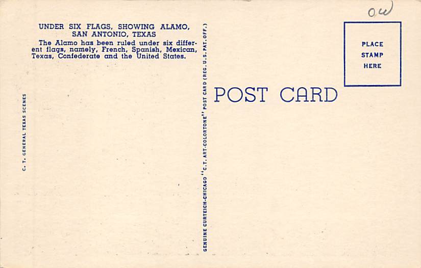 Under Six Flags The Alamo - San Antonio, Texas TX Postal Date: View Images Grade: 1 Size: Regular Size Postcard - approximately 3 1/2 inch x 5 1/2 inch (9 CM x 14 CM) Grading Scale: Grade 1 = Perfect corners ... Read More