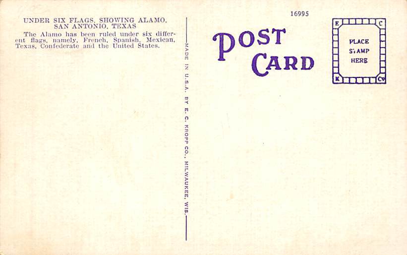 Under Six Flags The Alamo - San Antonio, Texas TX Postcard