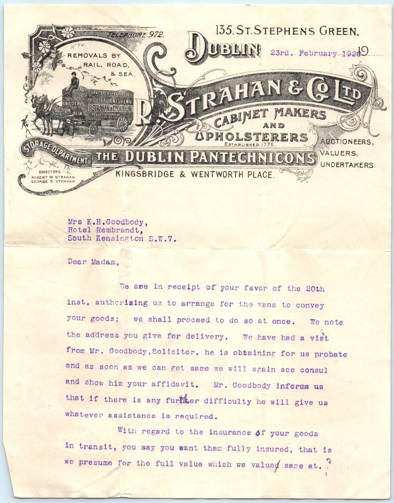 Undertakers Auctioneers Wagon Strahan Letterhead