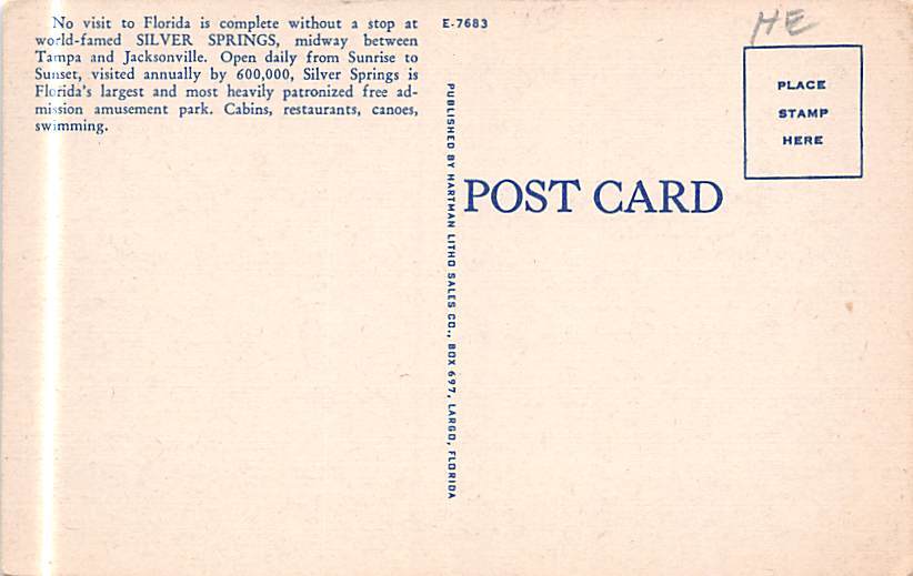Underwater Silver Springs, Florida, USA Postcard Unused, Grade: 3, , Size: Regular Size Postcard - approximately 3 1/2 inch x 5 1/2 inch (9 CM x 14 CM) Grading Scale: Grade 1 = Perfect corners Grade 2 = Very Mi ... Read More