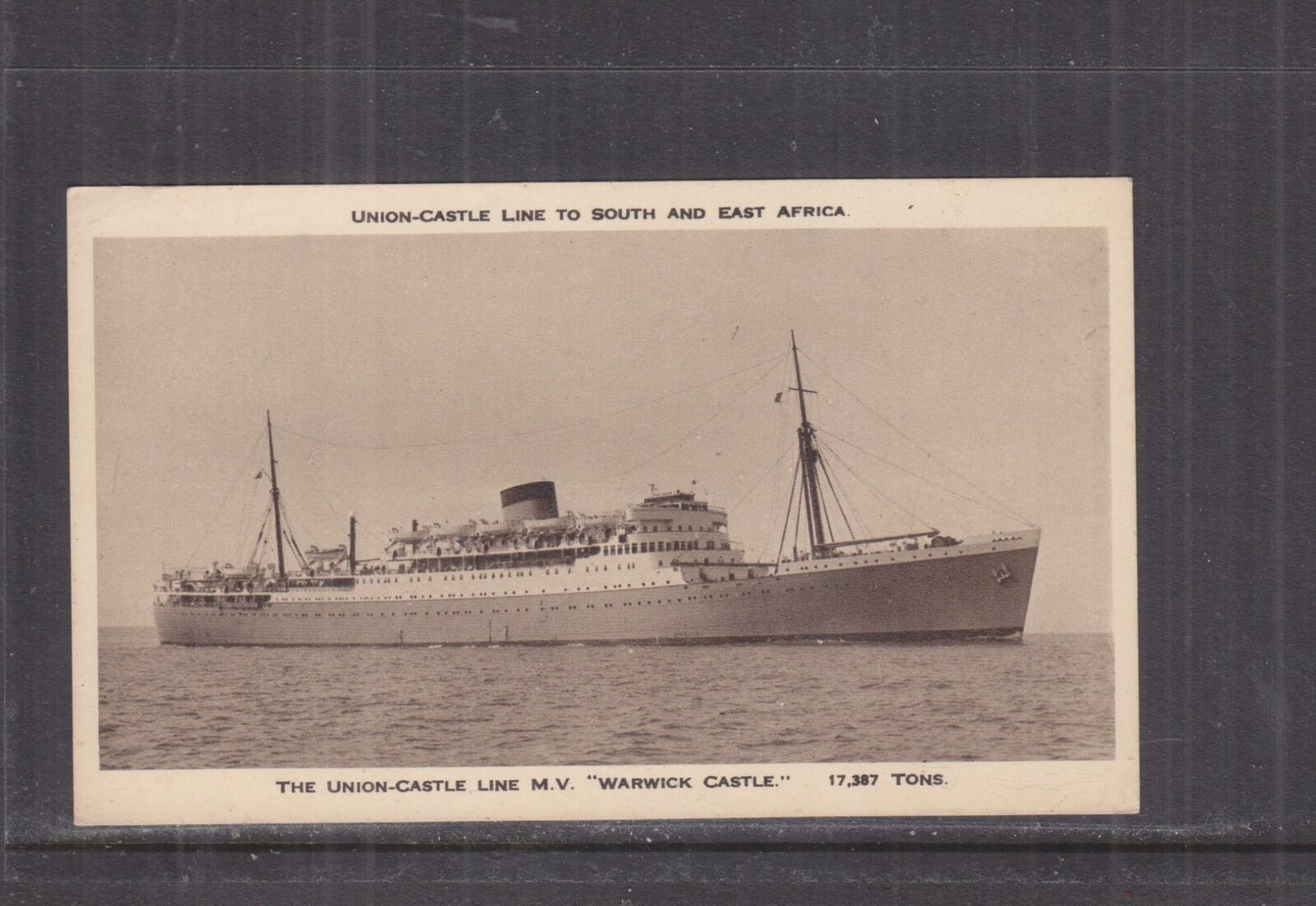 UNION CASTLE LINE " RMS WARWICK CASTLE " , c1940 ppc., unused. UNION CASTLE LINE " RMS WARWICK CASTLE " , c1940 ppc., unused. Description UNION CASTLE LINE " RMS WARWICK CASTLE " , c1940 ppc., unused. Postage & Packing North & South America, Europe, Africa, Middle East, US$ 3.00 New Zealand & South East Asia US$ 2.50 Australia US$ 2.00. Registered mail is $13.00 worldwide, Australia US$ 4.00 No extra for combined purchases. SE 37 Click images to enlarge Pictures sell!Auctiva offers Free Image Hosting and Editing.300+ Listing Templates!Auctiva gets you noticed!The complete Hip Selling Solution.Track Page Views WithAuctiva's FREE Counter