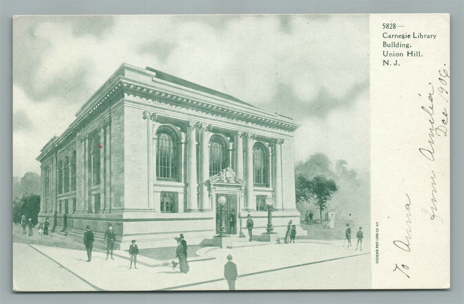 UNION HILL NJ CARNEGIE LIBRARY ANTIQUE POSTCARD