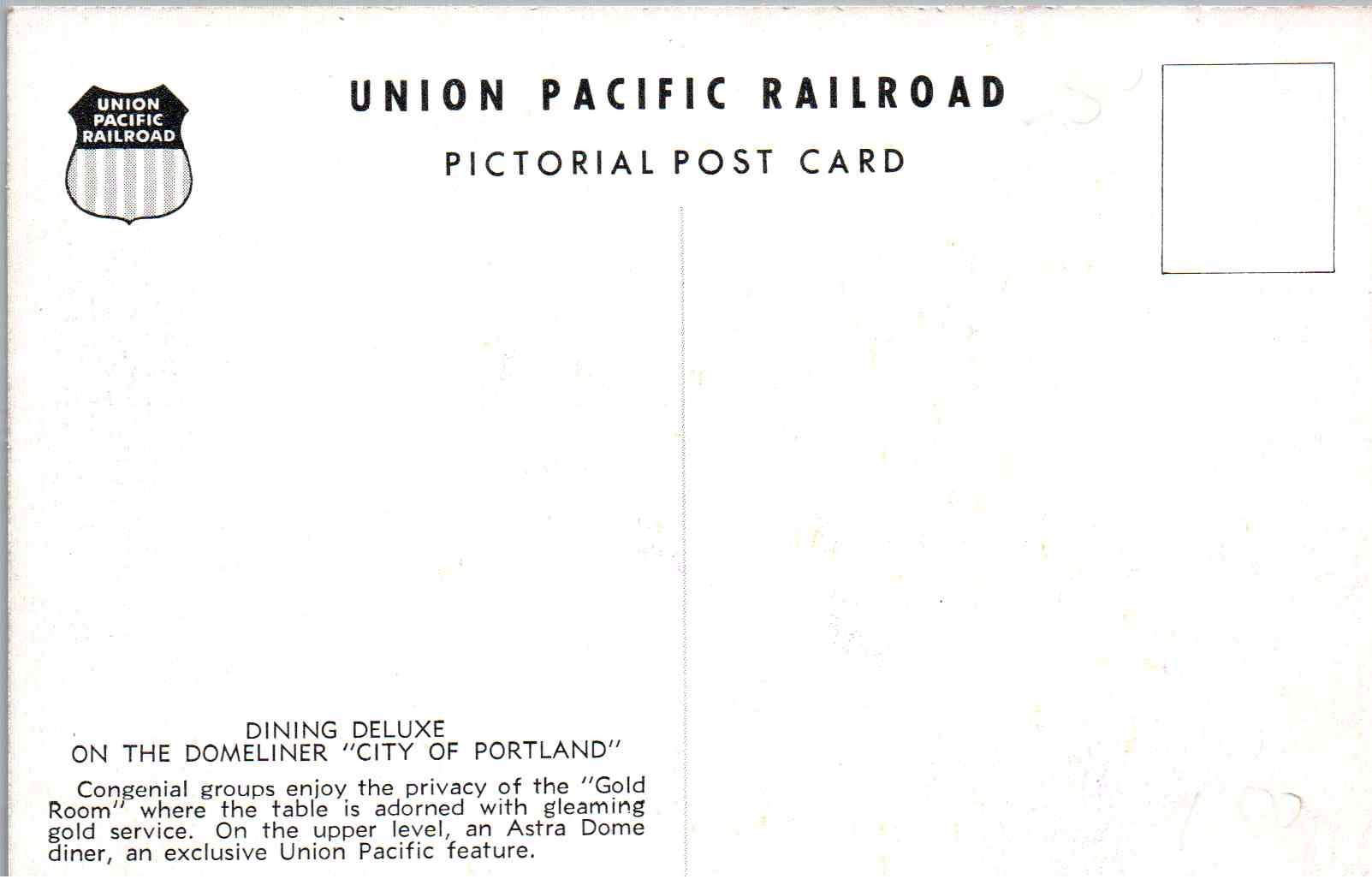 Union Pacific Railroad- Dine in Style in the "Gold Room" on the Domeliner- 1950s