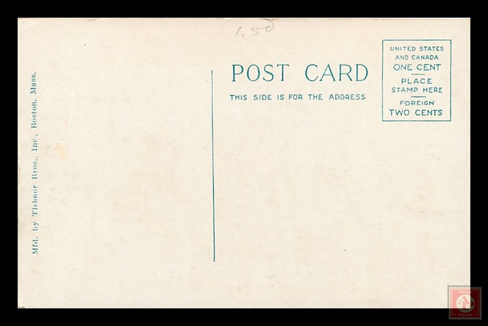 Some scans of postcards result in colored streaks which are a result of the error in scanning and not a fault of the postcard.