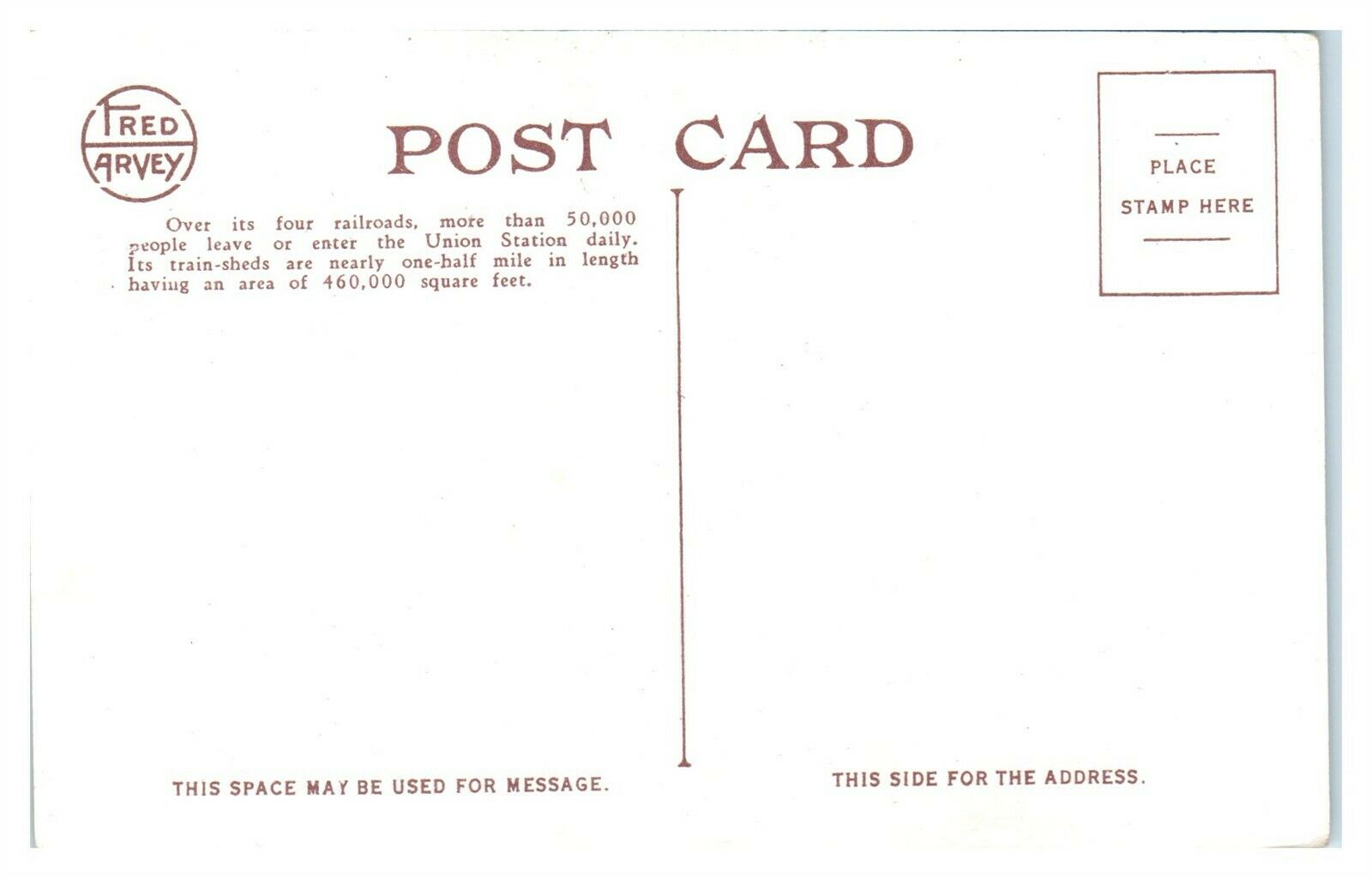 I have for sale one Union Station Interior, Train Platform & Sheds, Chicago, IL Fred Harvey Postcard.