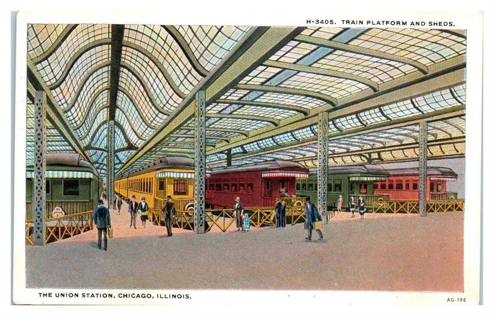 Union Station Interior, Train Platform & Sheds, Chicago, IL Fred Harvey Postcard