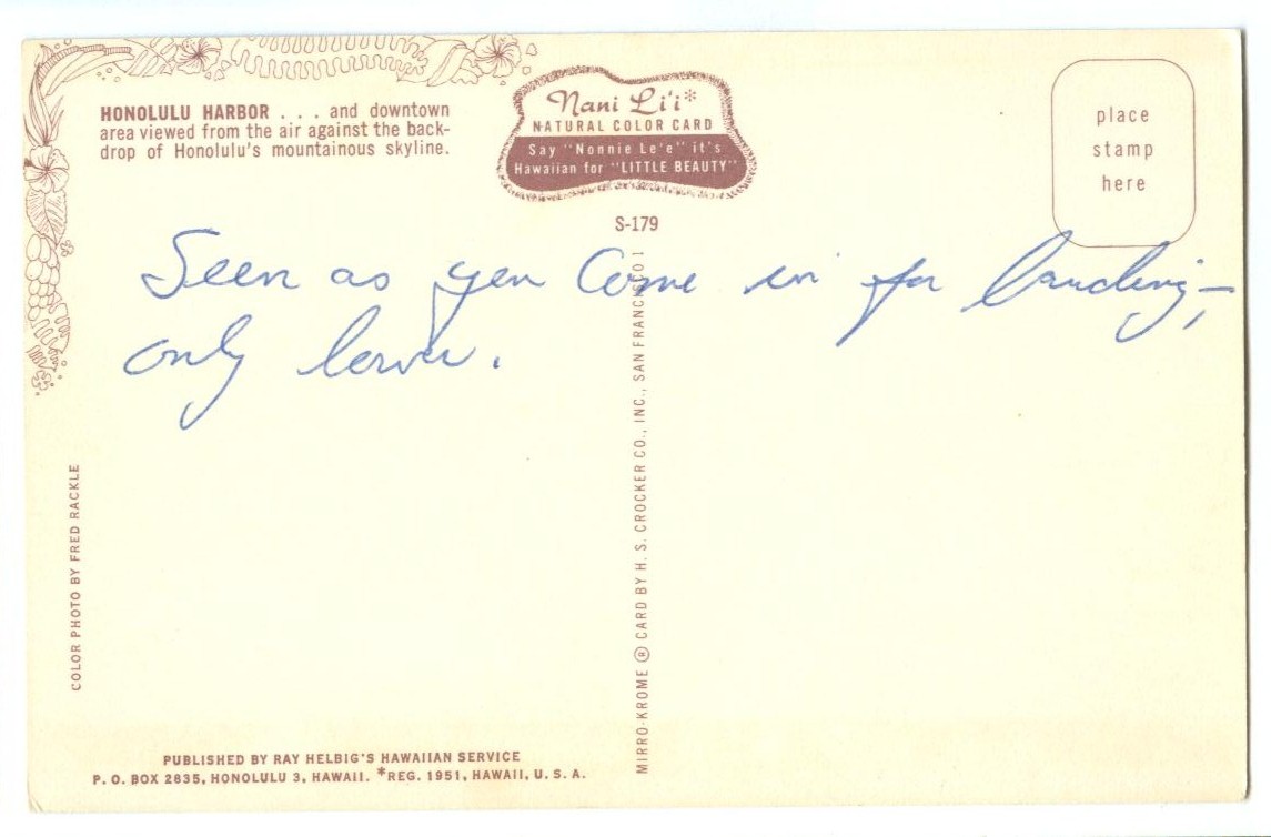 P8011 United States, Honolulu Harbor, Hawaii, 1960s used Postcard 5.5x3.5 Condition: very good