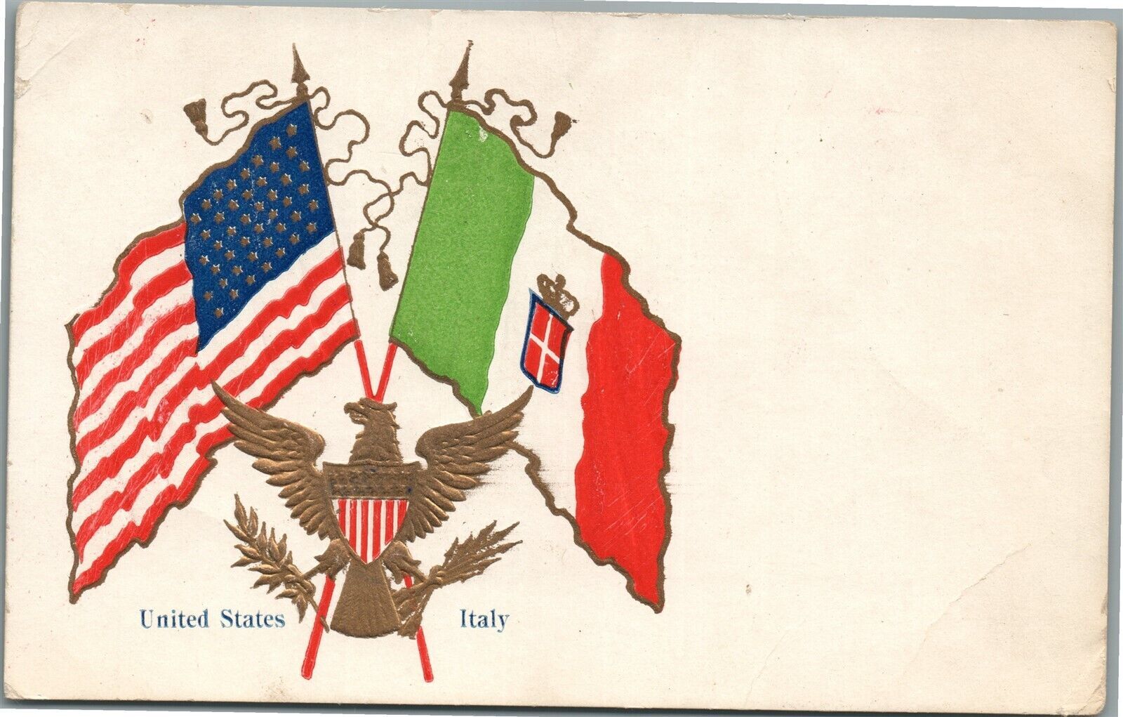 UNITED STATES ITALY FLAGS ANTIQUE POSTCARD