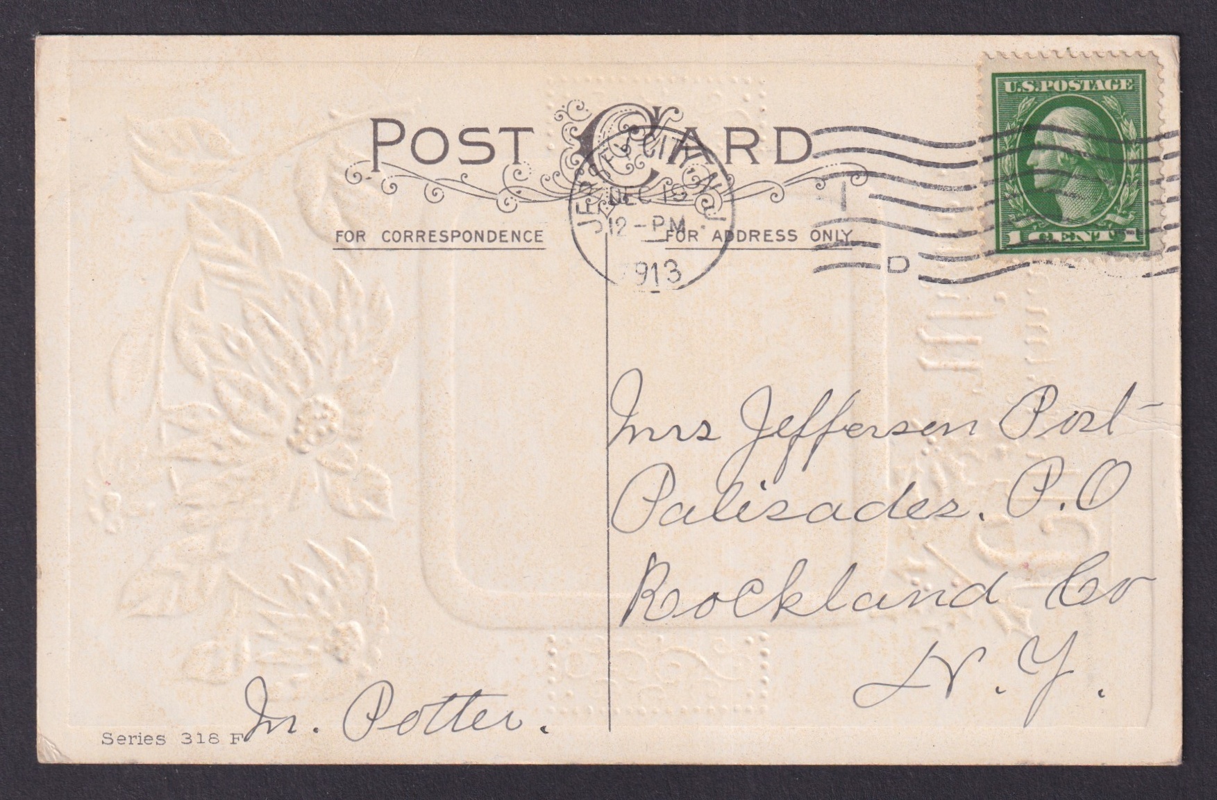 UNITED STATES, Postcard, Merry Christmas 1913