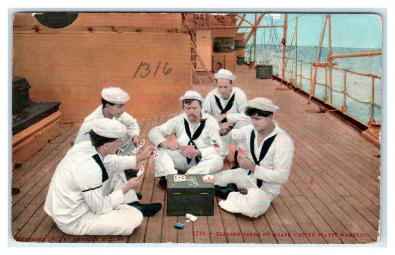 United States WARSHIP ~ SAILORS Playing Cards c1910s Mitchell Postcard