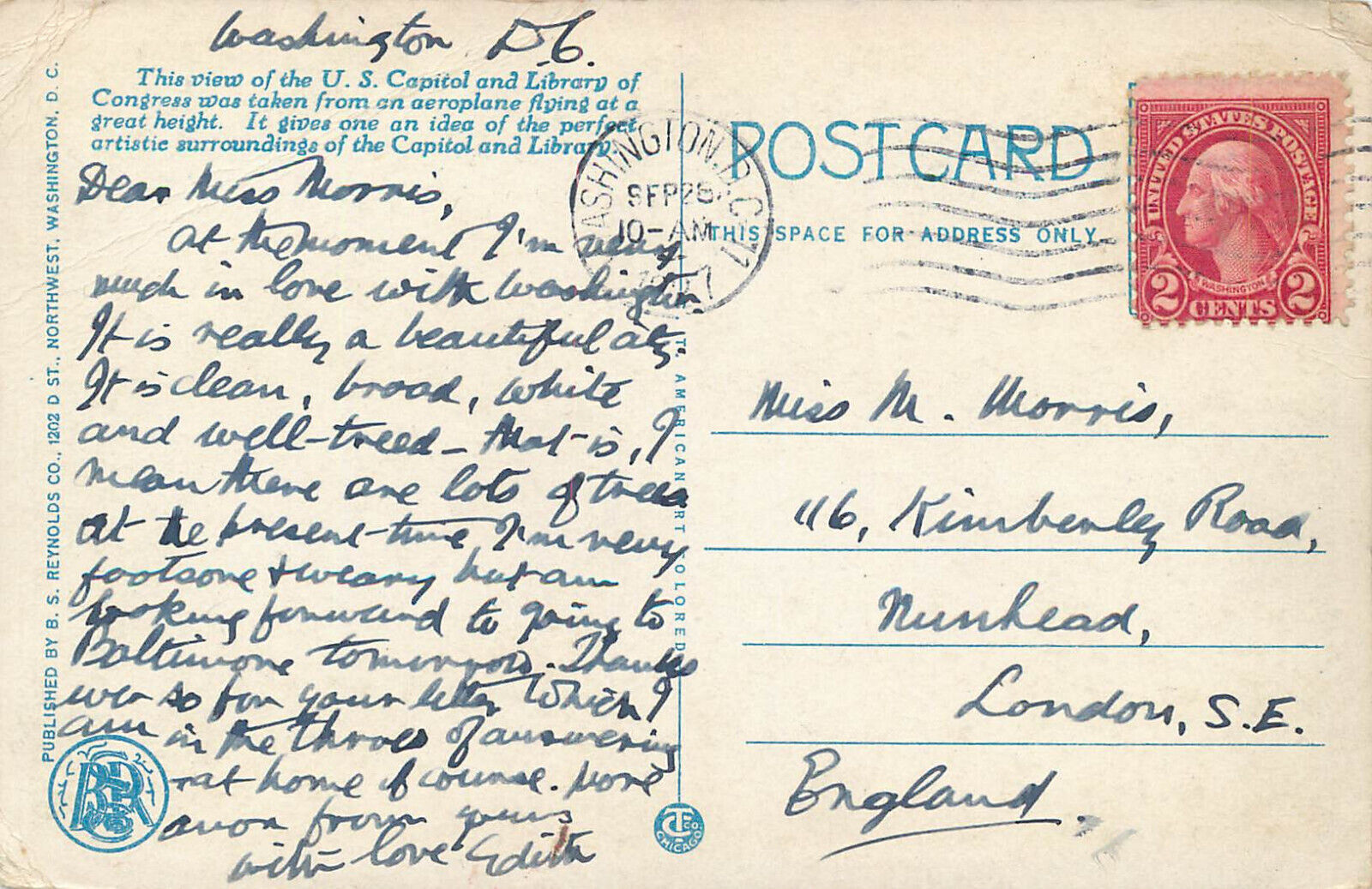 United States Washington D. C. Capitol from an aeroplane 1927