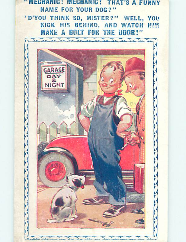 Unused Bamforth comic AUTO MECHANIC WITH HIS DOG o8070