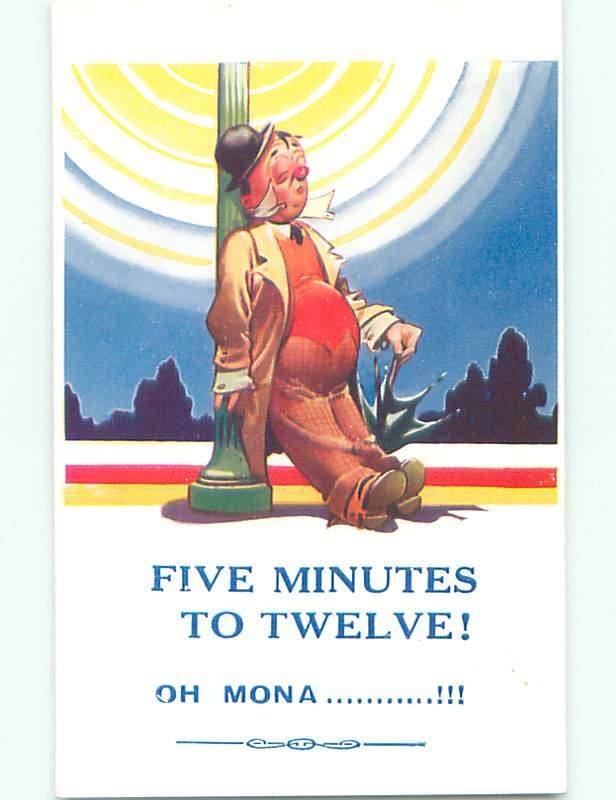 Unused Bamforth comic DRUNK MAN AT MIDNIGHT LEANS ON LAMP POST k8001@