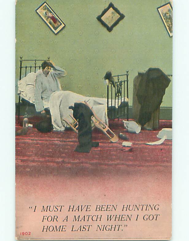 Unused Bamforth comic DRUNK MAN WAKES UP TO MESSY ROOM k8059
