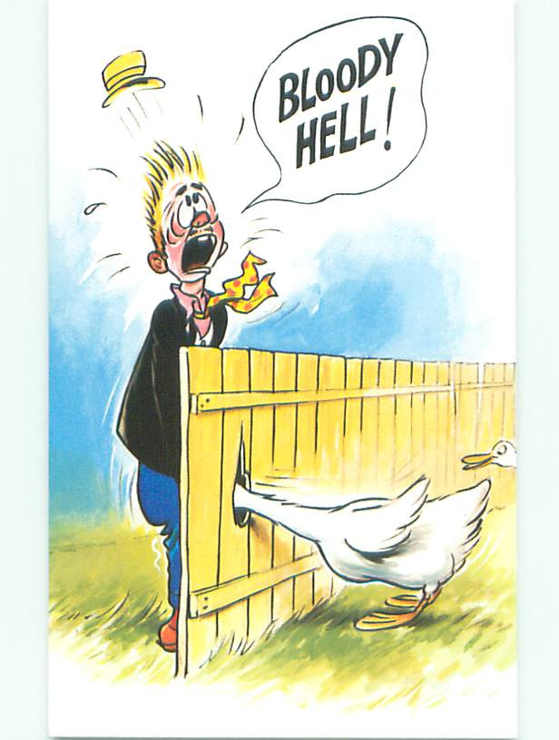 Unused Bamforth comic GOOSE BIRD ATTACKS MAN THROUGH HOLE IN FENCE k8070