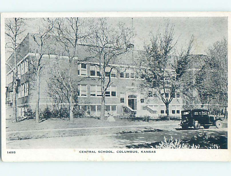 Unused Divided Back SCHOOL BUILDING Columbus Kansas KS J8421