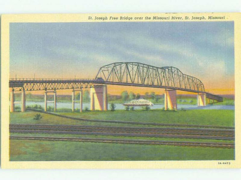 Unused Linen BRIDGE SCENE St. Joseph Missouri MO HQ9893
