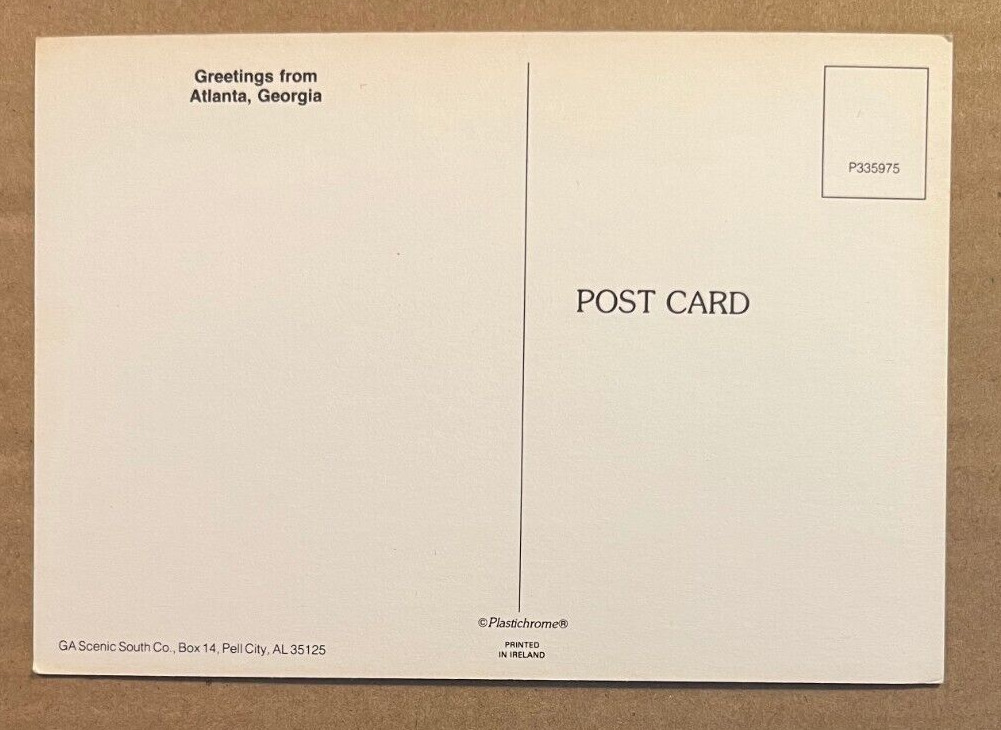 Vintage postcard - unused - greetings from atlanta, georgia. Please check the photo for the actual postcard you will receive.Thanks for looking.***please be aware the Hip standard shipping will be shipped in a plain white envelope with no protection except a soft postcard sleeve with an index card on each side ( item could get damaged in shipping) and no tracking available**