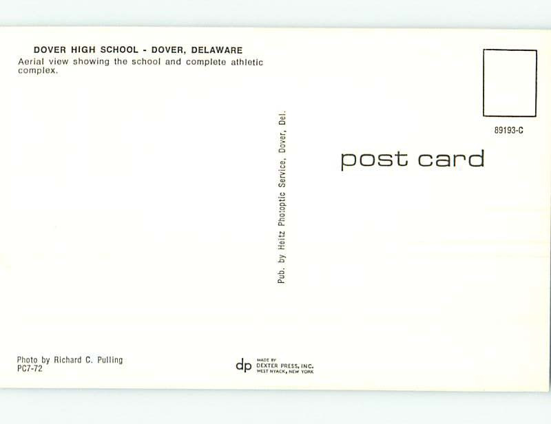 Unused Pre-1980 HIGH SCHOOL Dover Delaware DE L9813@