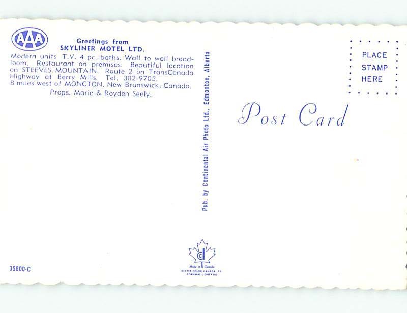 Unused Pre-1980 SKYLINER MOTEL Moncton NB n7574